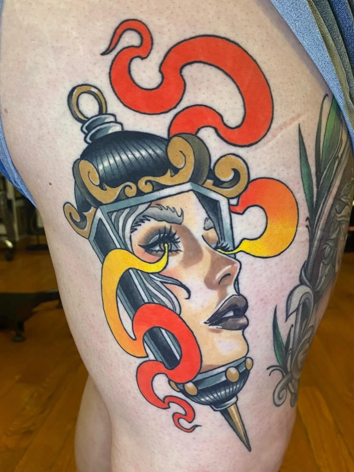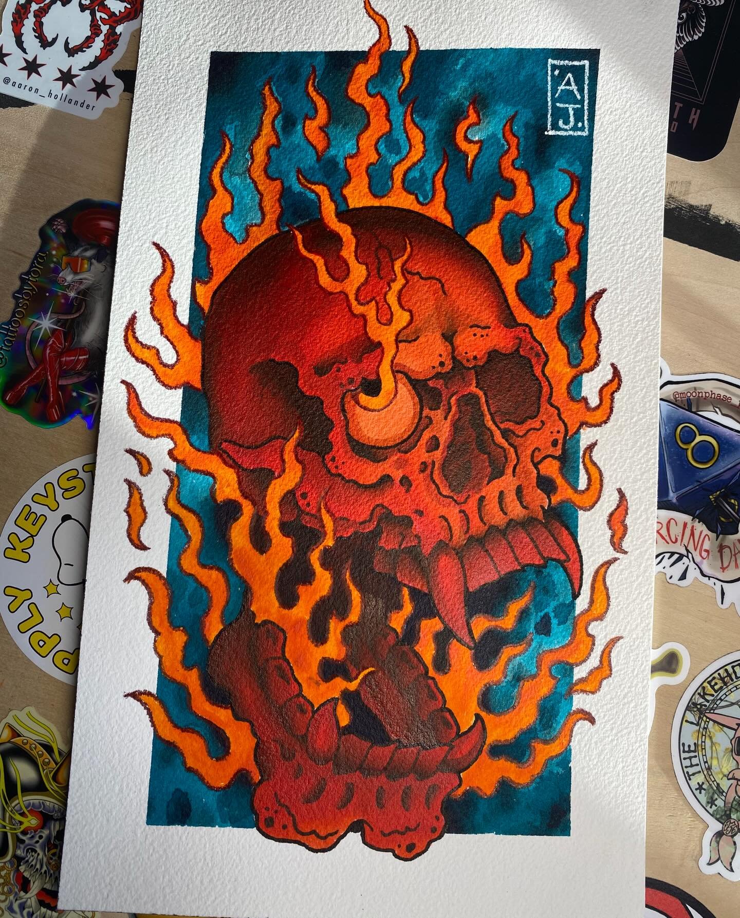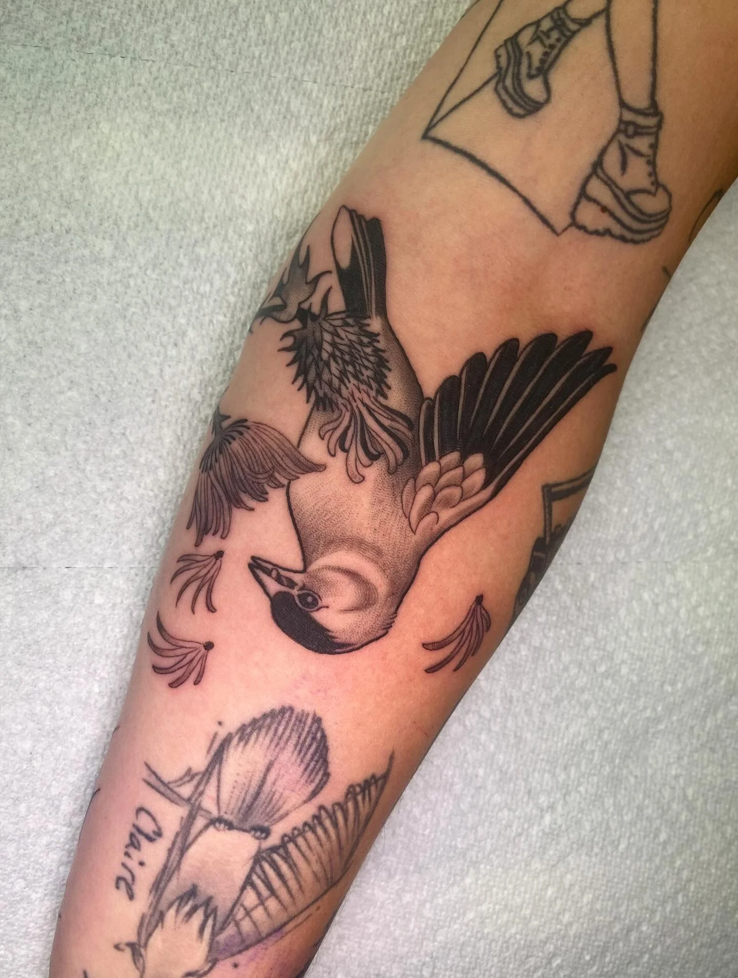 AJ began her tattoo apprenticeship in 2021 and immediately started displaying solid work in a variety of styles- from traditional to illustrative to black & grey realism. Not one to shy away from a challenge, AJ is ready and willing to take on your next tattoo project big or small to further her growth as a tattooer.
