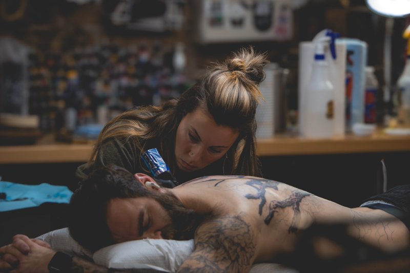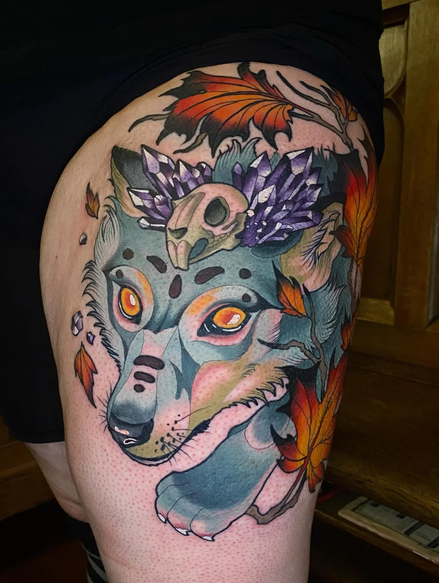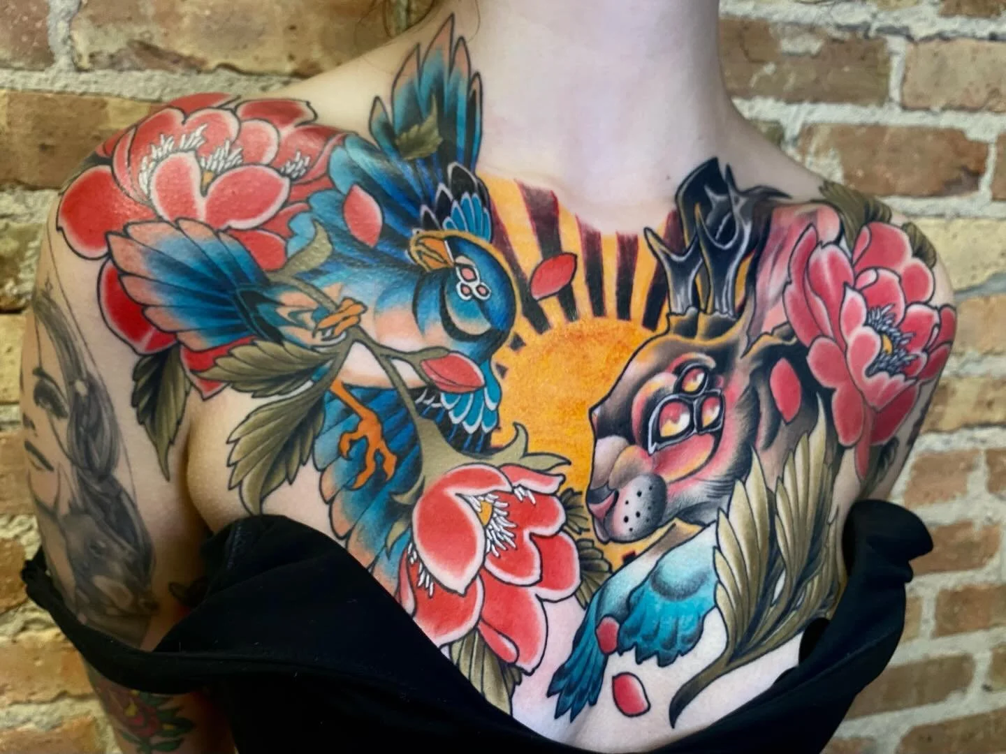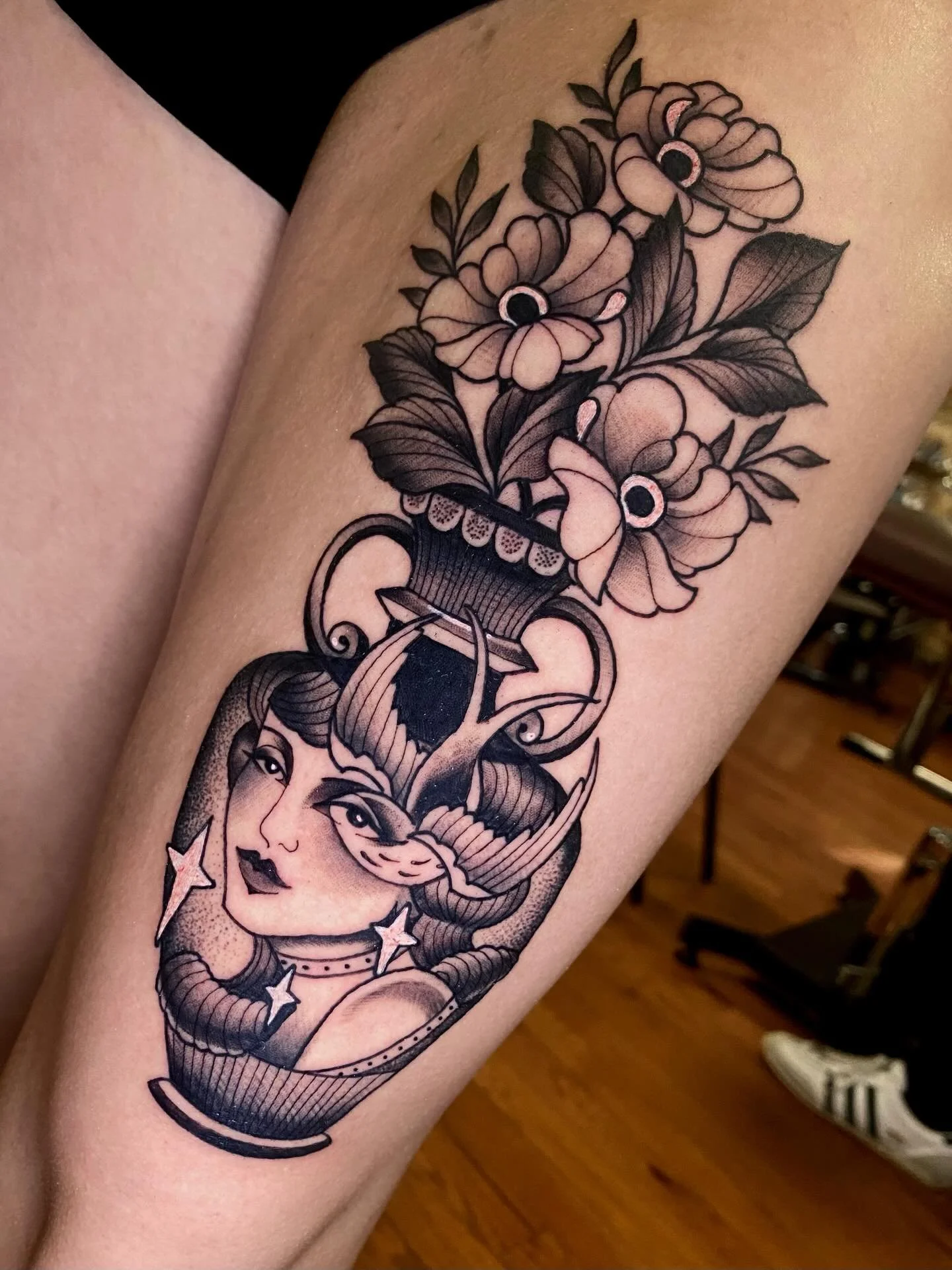 AJ began her tattoo apprenticeship in 2021 and immediately started displaying solid work in a variety of styles- from traditional to illustrative to black & grey realism. Not one to shy away from a challenge, AJ is ready and willing to take on your next tattoo project big or small to further her growth as a tattooer.