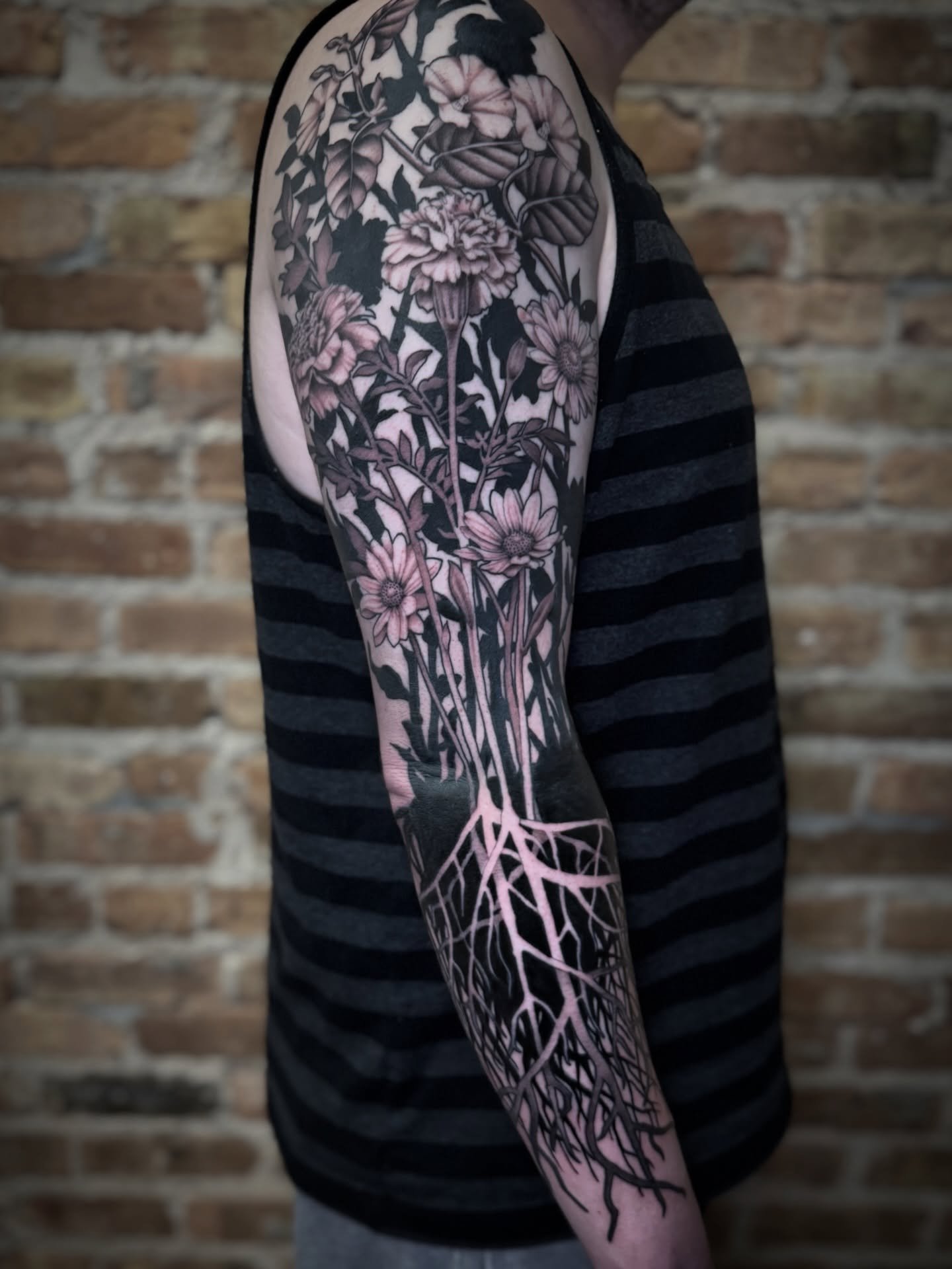 Now 10 years into his tattooing career, he has clearly brought his own notable style of illustrated realism into his tattoos, demonstrating a strong sense of composition with a keen attention to detail and sound fundamentals. He enjoys making bold, dark, high-contrast tattoos and putting his own spin on botanical floral. He also enjoys many other styles of tattooing including, black & grey realism, American traditional, neo-traditional, and full color pieces.